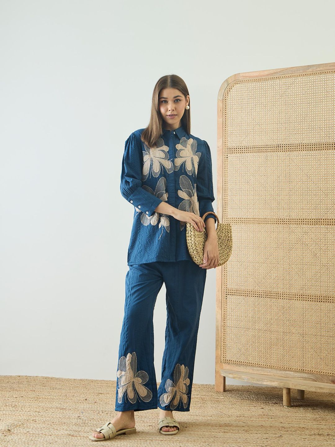 Cotton Embroidered Co-Ord Set - Teal