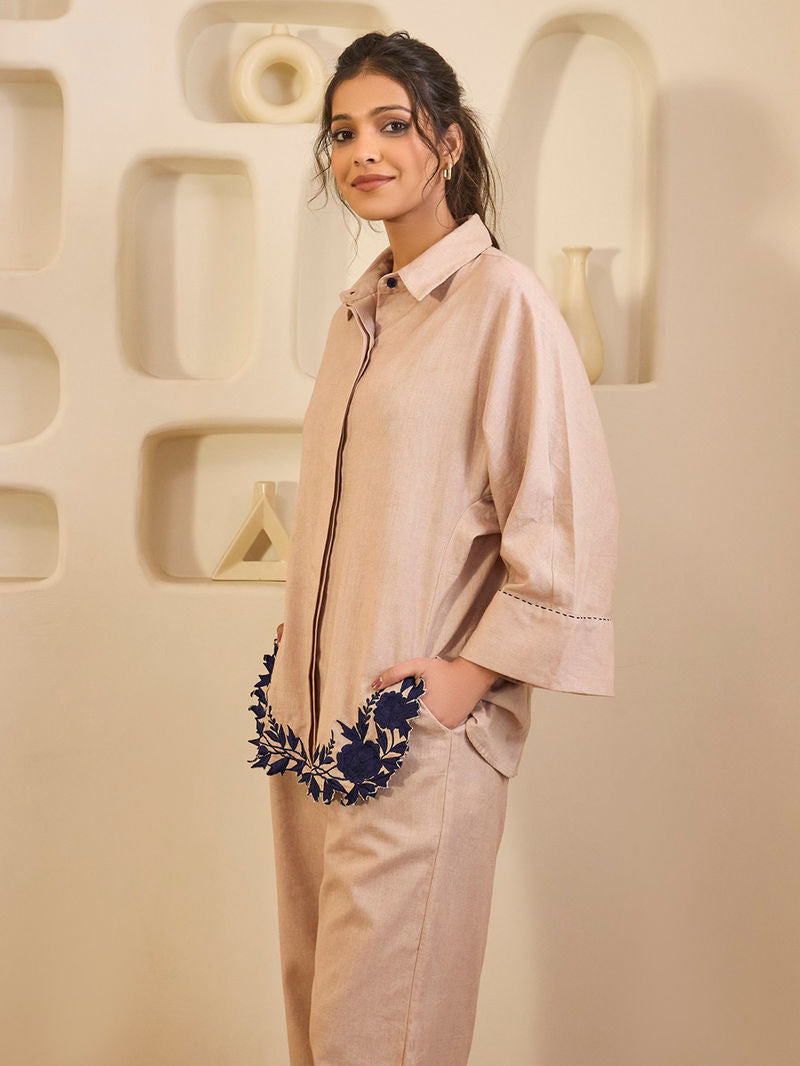 Old Rose Embroidered Cotton Tencel Co-ord Set- Set of 2